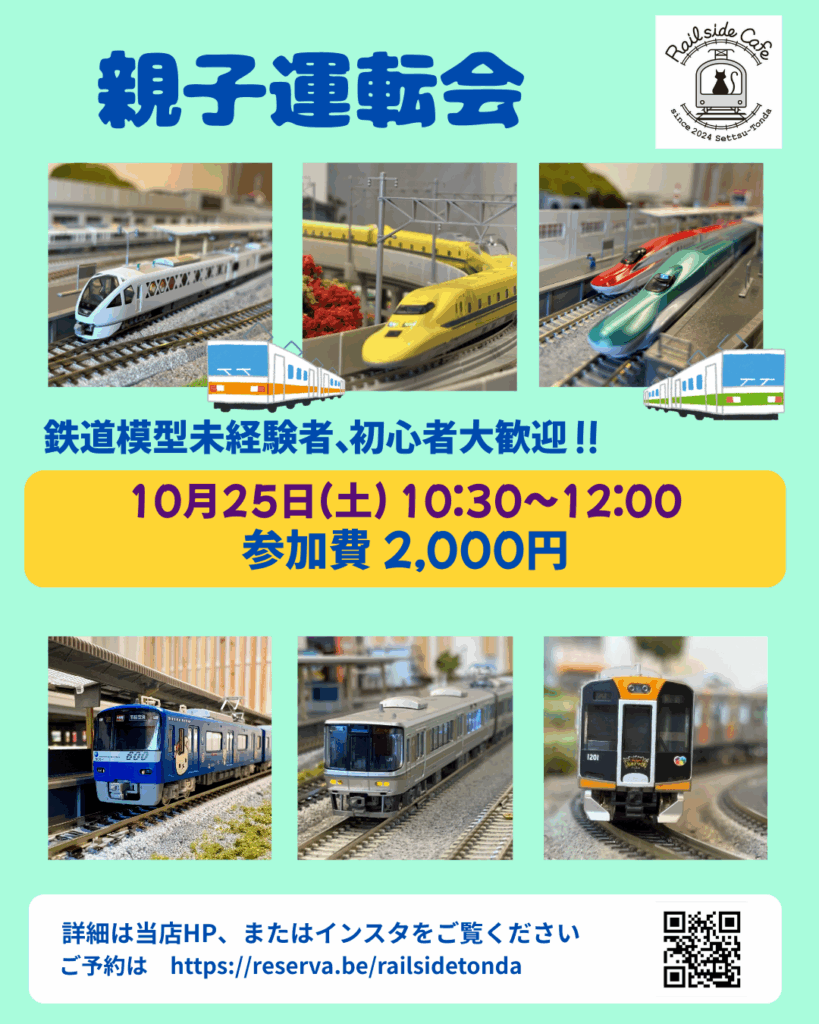 10月25日(土)に「親子運転会」を実施します。鉄道模型の世界をアットホームな雰囲気で、親子でいっしょに運転しませんか。2線同時に操作でき、たっぷり楽しむことができます。また、全員参加の鉄道の(難問)クイズ大会で盛り上げていきたいと思います。